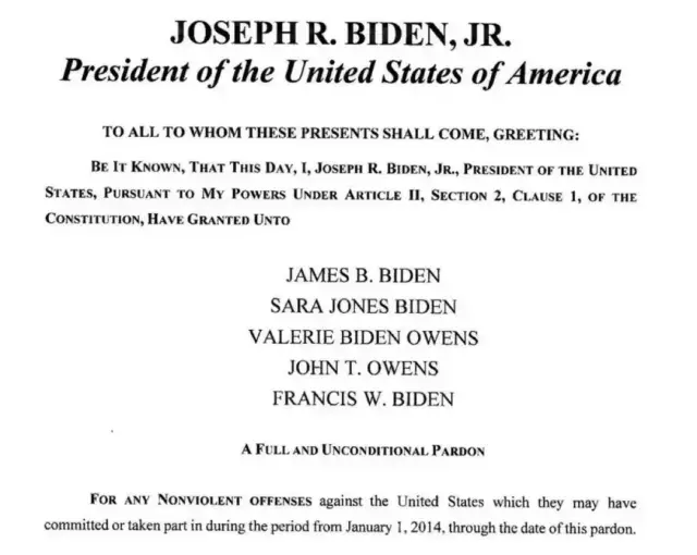 Biden’ın iki erkek kardeşi James ve Francis Biden ile kız kardeşi Valerie bu sayede açılacak davalara karşı koruma altına alınmış oldu.