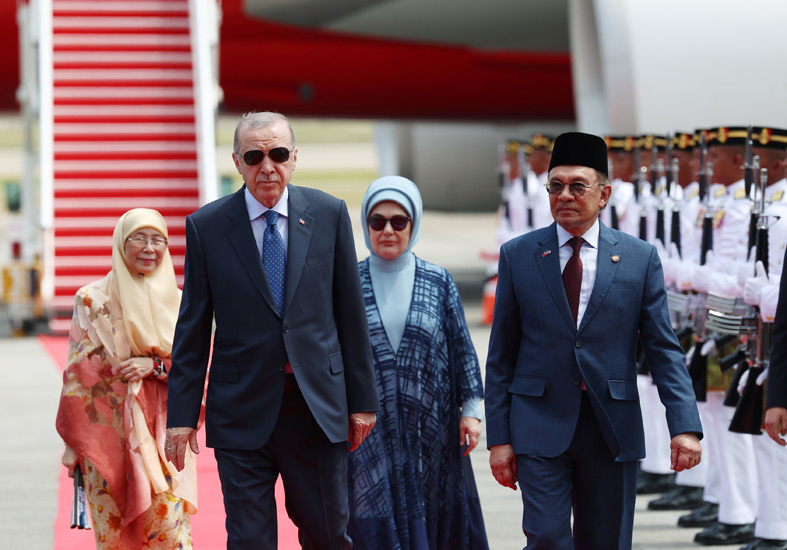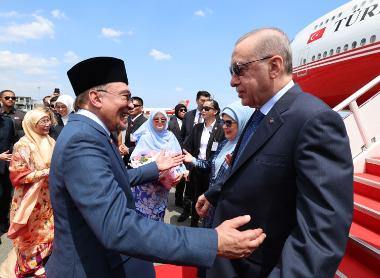 Cumhurbaşkanı Erdoğan’ı, Kuala Lumpur Uluslararası Havalimanı’nda, Malezya Başbakanı Enver İbrahim ve eşi Dr. Wan Azizah İsmail, Türkiye’nin Kuala Lumpur Büyükelçisi Emir Salim Yüksel, Malezya Savunma Bakanı Mohamed Khaled Nordin ile büyükelçilik personeli ve diğer yetkililer karşıladı.
