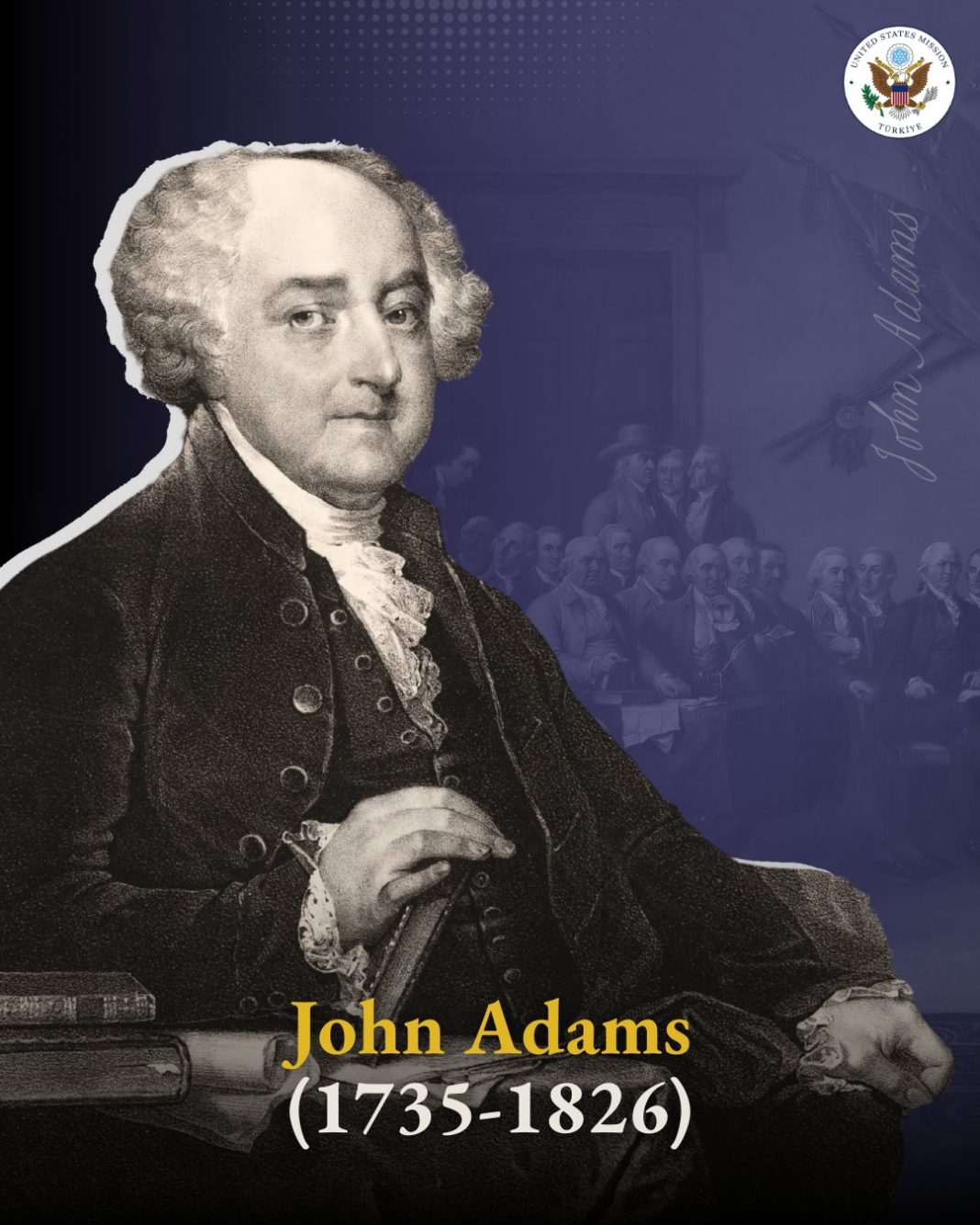 John Adams, ABD’nin ikinci başkanı ve ülkenin bağımsızlığını kazanmasında etkili rol oynamış isimlerden biri olarak ülkenin ilk dönem değerlerinin belirlenmesine yardımcı olmuştur.