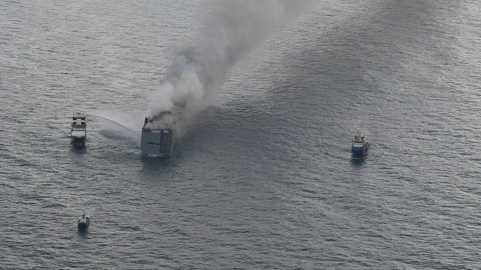 Sahil Güvenlik Sözcüsü, yangının yanmaya devam etmesine izin verdiklerini ve araçlarda bulunan lityum iyon pillerin patlayabilme riskinden ötürü gemiyi güvenli bir mesafeden izlediklerini söyledi.