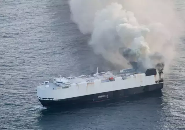 Alaska açıklarında 3 binden fazla otomobil taşıyan dev kargo gemisinde yangın çıktı. Gemideki 800’den fazla elektrikli araçta bulunan lityum iyon pillerin patlama olasılığı dolayısıyla yangının sürmesine izin veriliyor.