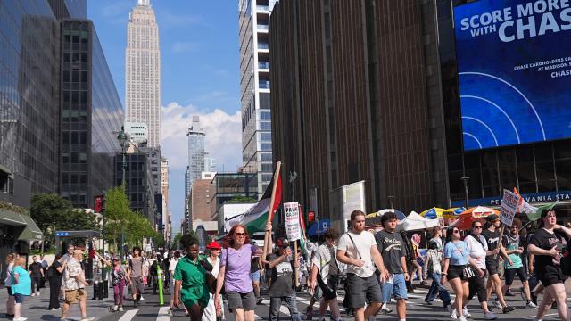 New York şehrinde binlerce kişi sokaklara inerek ABD’nin İran saldırısını protesto etti. Trump’ın İran’a yönelik saldırılarının pervasızca olduğunu söyleyen protestocular, “Filistinliler göz göre göre katlediliyor. Ve iktidardakiler sessizlik, bahaneler ve ölüm sunuyor.” dedi.
