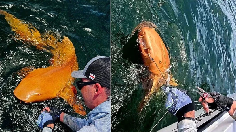 Kosta Rika açıklarında yapılan bir balıkçılık gezisinde, hem ksantizm hem de albinizm özellikleri taşıyan nadir bir turuncu hemşire köpekbalığı görüntülendi. Beyaz gözleri ve parlak turuncu derisiyle dikkat çeken bu sıra dışı köpekbalığı, bilim insanlarında yeni sorular uyandırdı.