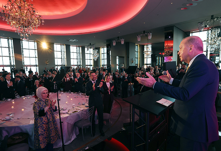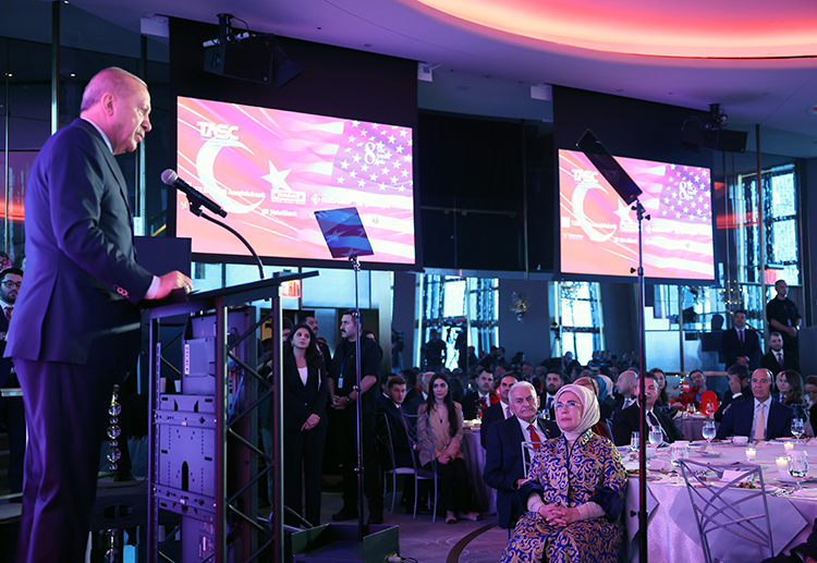 Cumhurbaşkanı Recep Tayyip Erdoğan ve eşi Emine Erdoğan, New York’ta Türk-Amerikan Ulusal Yönlendirme Komitesi (TASC) tarafından düzenlenen akşam yemeğine katıldı. Cumhurbaşkanı Erdoğan, yemekte bir konuşma yaptı.