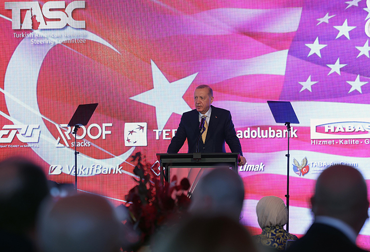 Cumhurbaşkanı Erdoğan, Türk-Amerikan Ulusal Yönlendirme Komitesi tarafından düzenlenen akşam yemeğinde yaptığı konuşmada, “Ne sınırlarımız içinde ne bölgemizde teröre tahammülümüz yoktur. Bu hedefimiz elhamdülillah adım adım gerçeğe dönüşmektedir” dedi.