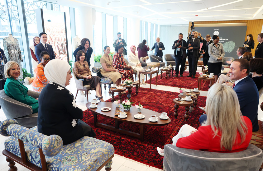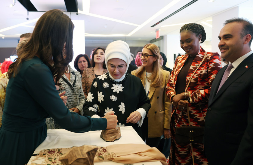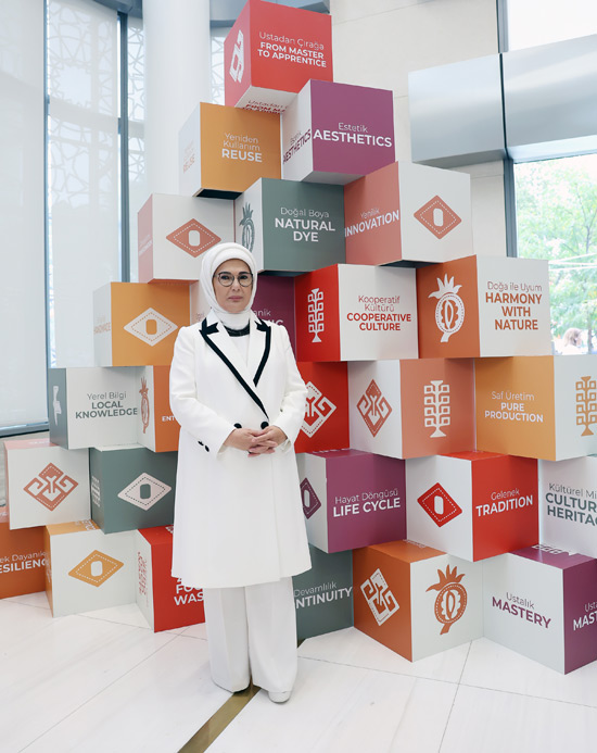 Emine Erdoğan ve beraberindeki lider eşleri, program kapsamında ilk olarak, Sanayi ve Teknoloji Bakanlığının öncülüğünde hazırlanan ve Anadolu’nun binlerce yıllık bilgi, zanaat ve kültür birikimini bugünün tasarım anlayışıyla buluşturan sergiyi gezdi.