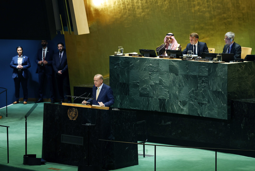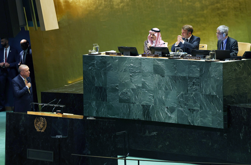 “Birleşmiş Milletler Genel Kurulu marjında düzenlenen “Filistin Meselesine Çözüm Bulunması ve İki Devletli Çözümün Hayata Geçirilmesi” başlıklı Yüksek Düzeyli Uluslararası Konferans’ın usullerine göre, Devlet ve Hükümet Başkanlarının konuşmaları için 5 dakika, diğer konuşmacılar için ise 3 dakika süre öngörülmüştür.