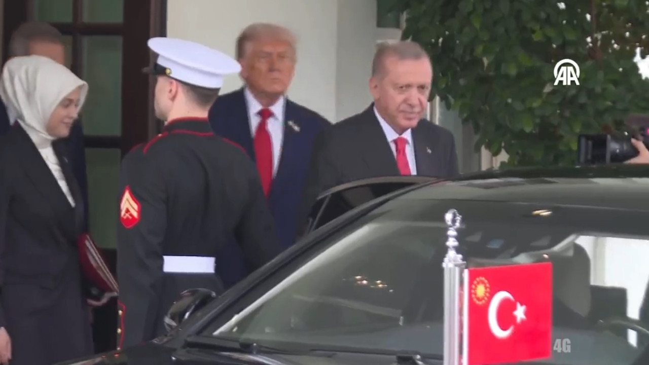Başkan Erdoğan, Donald Trump’la görüşmesinin ardından Oval Ofis’ten ayrıldı. ABD Başkanı Trump’ın Erdoğan’ı kapıda uğurlaması ve bir süre aracının ayrılmasını beklediği anlar dikkat çekti.