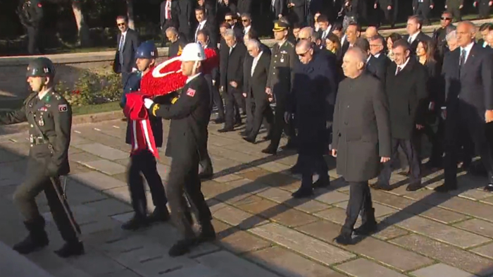 Anıtkabir’deki tören, devlet erkanının Aslanlı Yol’dan yürüyüşüyle başladı. Anıtkabir’de mozoleye çelenk bırakan Cumhurbaşkanı Erdoğan daha sonra Özel Defteri imzaladı.