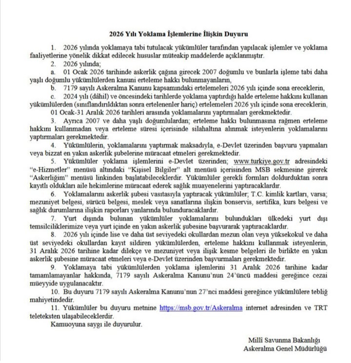 T.C. New York Başkonsolosluğu’ndan 2026 Yılı Askerlik Yoklaması İşlemlerine İlişkin Duyuru 📣