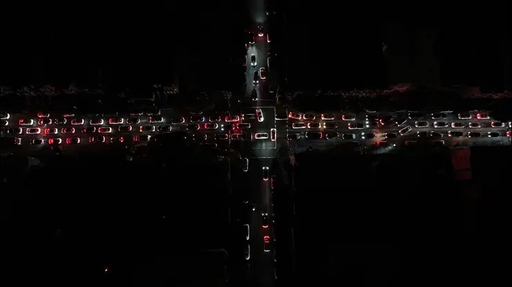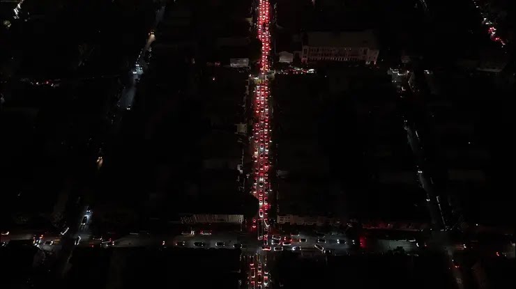 Elektrik verilemeyen bölgelerde trafik ışıkları da devre dışı kaldı. Bu nedenle caddelerde uzun araç kuyrukları oluştu.