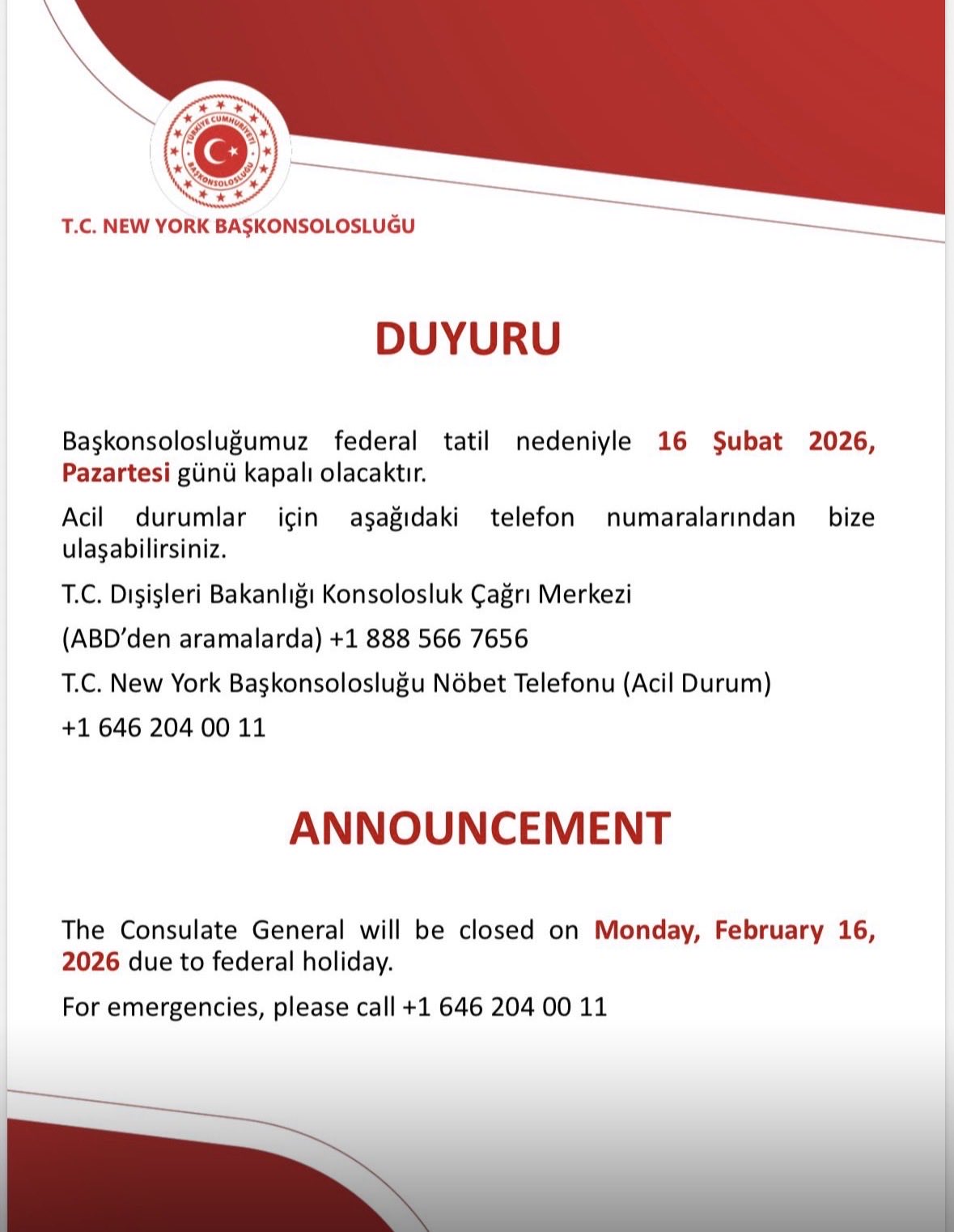 Ana SayfaABD🇺🇸🇹🇷T.C. New York Başkonsolosluğu’ndan Duyuru 📣 ABD 14 Şubat 2026 Updated: 3 saat ago 🇺🇸🇹🇷T.C. New York Başkonsolosluğu’ndan Duyuru 📣 By Usaturknews Paylaş FacebookTwitterPinterestWhatsApp - Advertisement - - Advertisement - Paylaş FacebookTwitterPinterestWhatsApp Usaturknews - Advertisement - Bizi Sosyal Medyadan Takip Edin 16,985BeğenenlerBeğen2,458TakipçilerTakip Et61,453AboneAbone Ol Okumalısınız! ABD ABD’de federal hükümet, öğrenci kabul süreçlerindeki verileri paylaşmadığı gerekçesiyle Harvard’a dava açtı Usaturknews - 14 Şubat 2026 - Advertisement - ABD Mısır’da 10 bin yıllık geçmişi olan arkeolojik saha keşfedildi 14 Şubat 2026 ABD Bagajdan çalınan 30 milyon dolar İBB rüşvet soruşturmasına uzandı 14 Şubat 2026 ABD ABD’de vatandaşlıkların iptal edilmesi için ayda 200 dava açılması planı 13 Şubat 2026 Related News ABD ABD’de federal hükümet, öğrenci kabul süreçlerindeki verileri paylaşmadığı gerekçesiyle Harvard’a dava açtı 14 Şubat 2026 ABD Mısır’da 10 bin yıllık geçmişi olan arkeolojik saha keşfedildi 14 Şubat 2026 ABD Bagajdan çalınan 30 milyon dolar İBB rüşvet soruşturmasına uzandı 14 Şubat 2026 ABD ABD’de vatandaşlıkların iptal edilmesi için ayda 200 dava açılması planı 13 Şubat 2026 ABD Gökbilimciler, imkansız olduğunu düşündükleri bir güneş sistemi tespit etti 13 Şubat 2026 - Advertisement - CEVAP VER İptal Yorum: Lütfen yorumunuzu giriniz! İsim:* Lütfen isminizi buraya giriniz E-Posta:* Yanlış bir e-posta adresi girdiniz! Lütfen e-posta adresinizi buraya girin Website: Ismimi, e-postamı ve web sitemi bir dahaki sefere bu tarayıcıya kaydet.