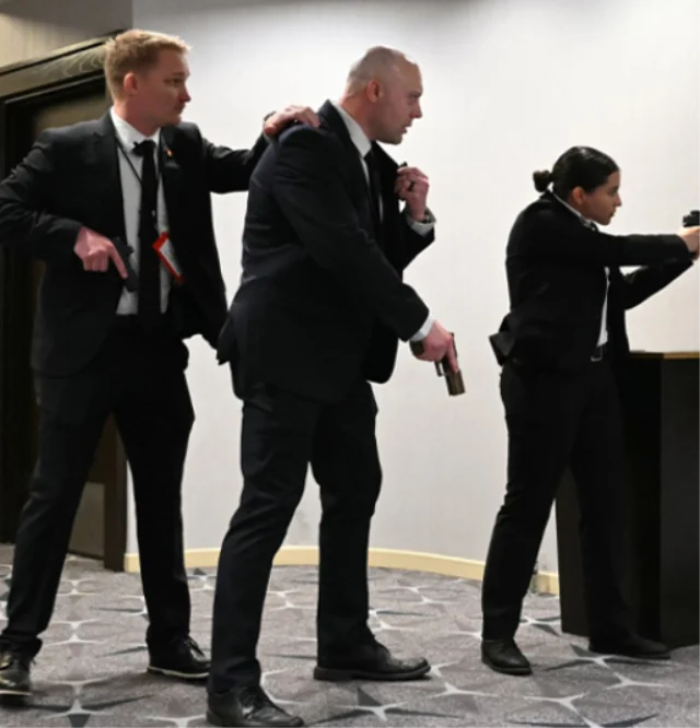 Gizli Servis ajanları, Trump ile birlikte First Lady Melania Trump, Dışişleri Bakanı Marco Rubio ve kabine üyelerini de salondan çıkardı. Olayda kimsenin yaralanmadığı ve ABD Başkanı Trump’ın da güvende olduğu açıklandı.